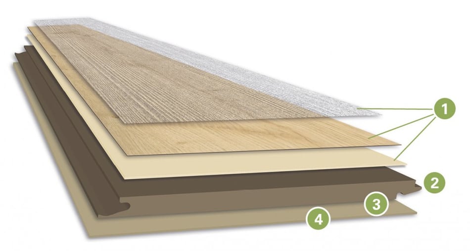 1. Deckelement: PU-Deckschicht mit NatureSurface, Dekor und Stabilisierung mit ecuran